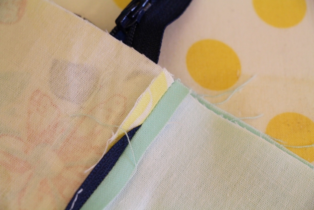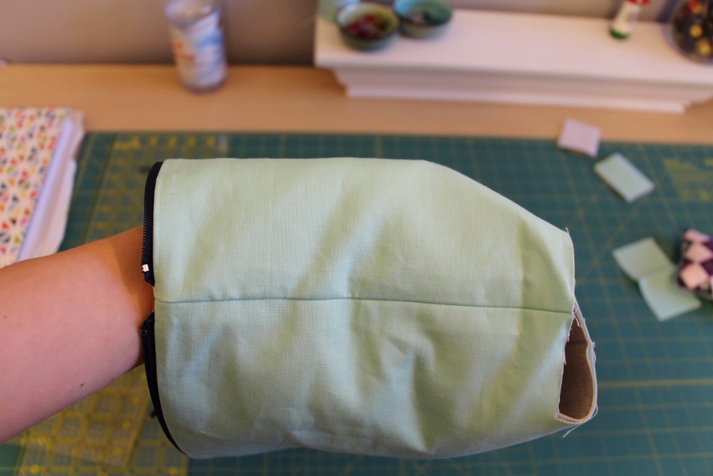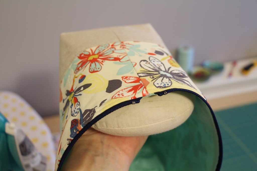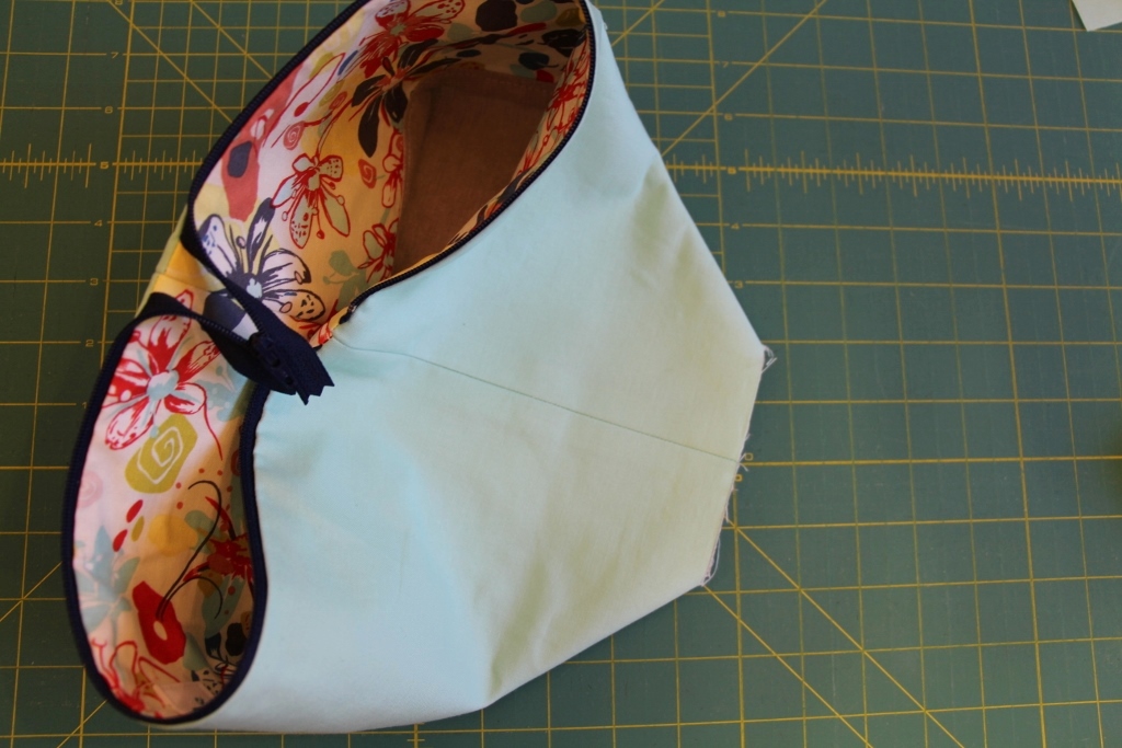 I like to give the zippered edges a really good press here, making sure that you pull back any excess fabric from the zipper. (This prevents fabric from being caught in the zipper when being used.) Your bag should look like this now.