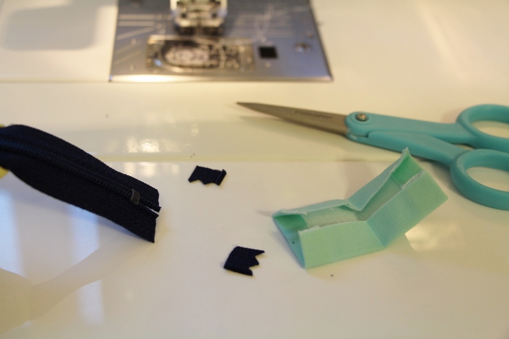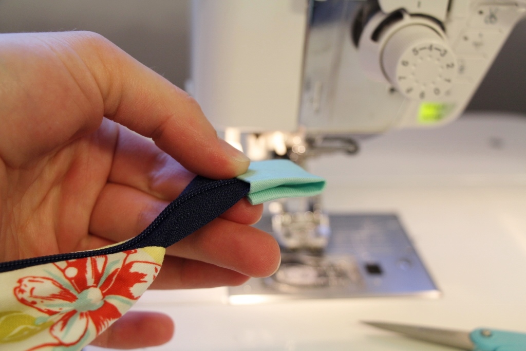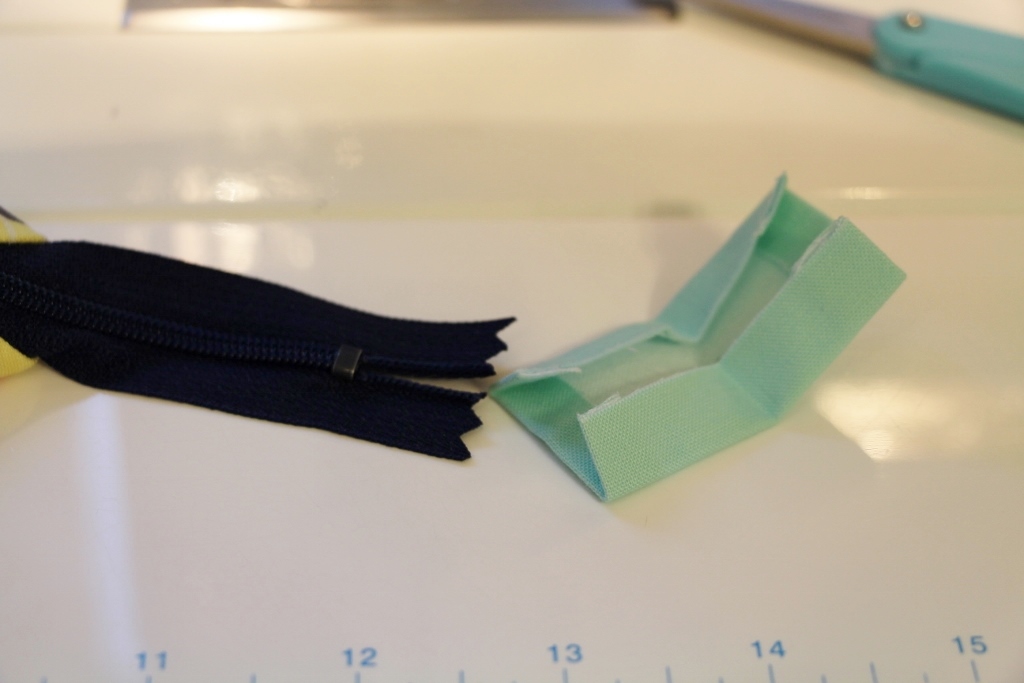 Following Anna’s original instructions, prepare the pull tab for the zipper.