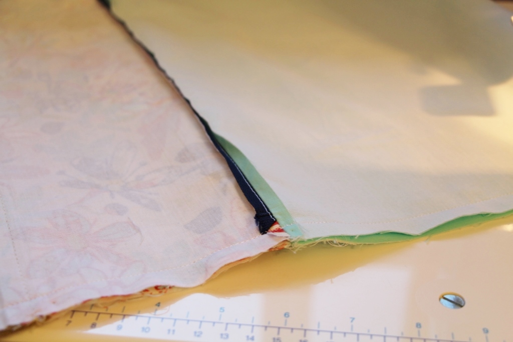 Next you will need to trim off the little bits of interfacing that might be overhanging the panels. I find this makes for a tidier finished product.
