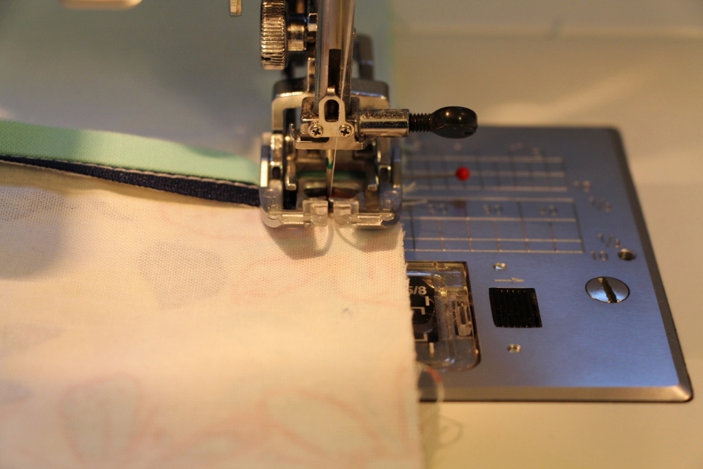 Using a quarter inch seam, stitch, with back-stitching at the beginning and end, the entire length of the opening.