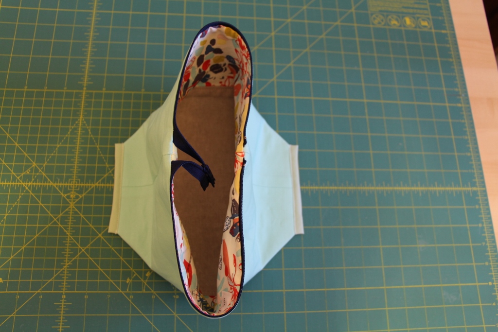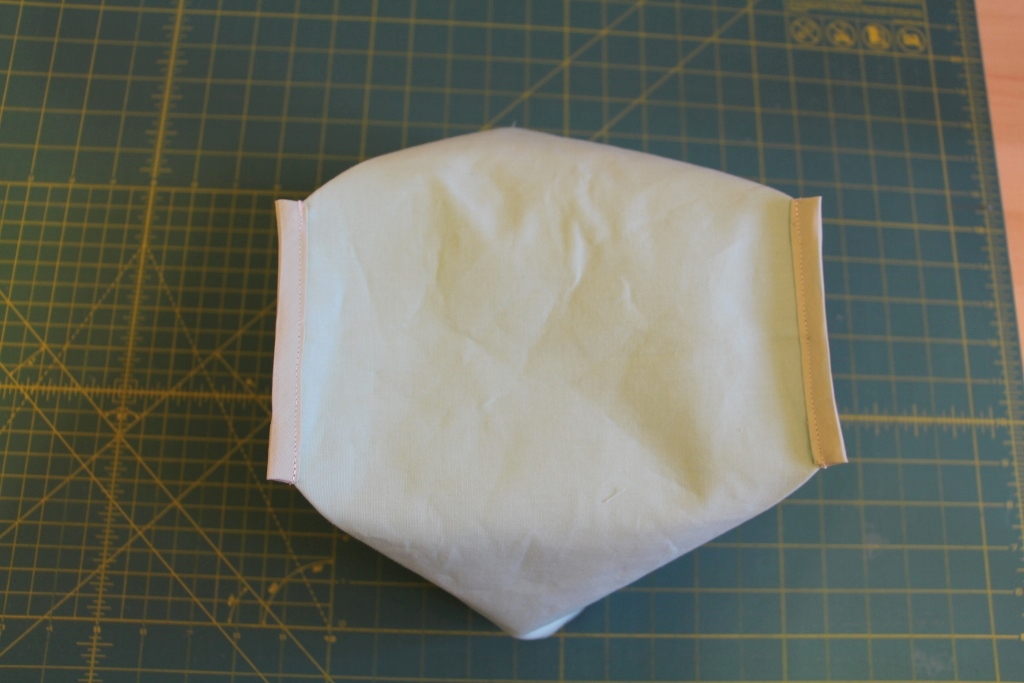 Flip the bag right side out and pushing the bias tape outwards, press the edge of the boxed corners.