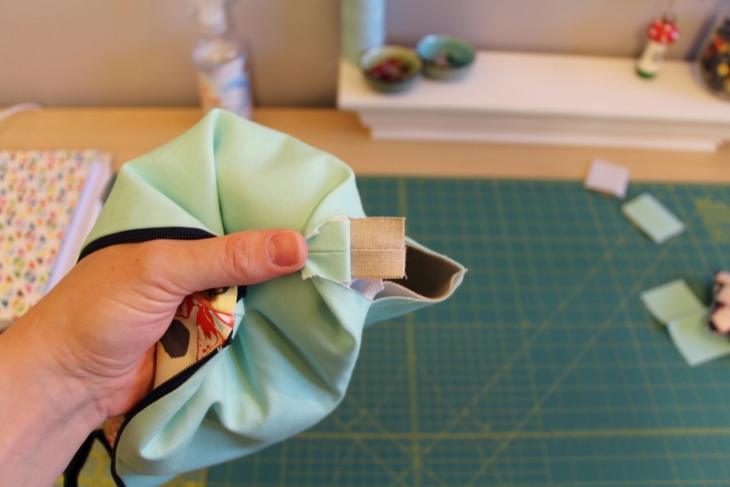 Reaching in, through one corner, gently pull the opposite corner through the opening and out the other side to turn your bag right side out. (see below)