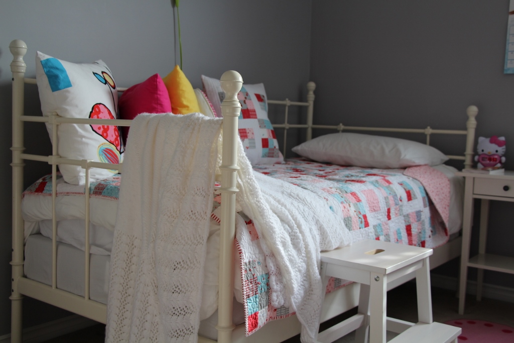 So, this quilt has been done for a while. For some mysterious reason, it has been ridiculously hard to get decent photos of it. You can read more about the top here. (I’m really hoping that when we move in the fall, there will be more options for photo taking.)